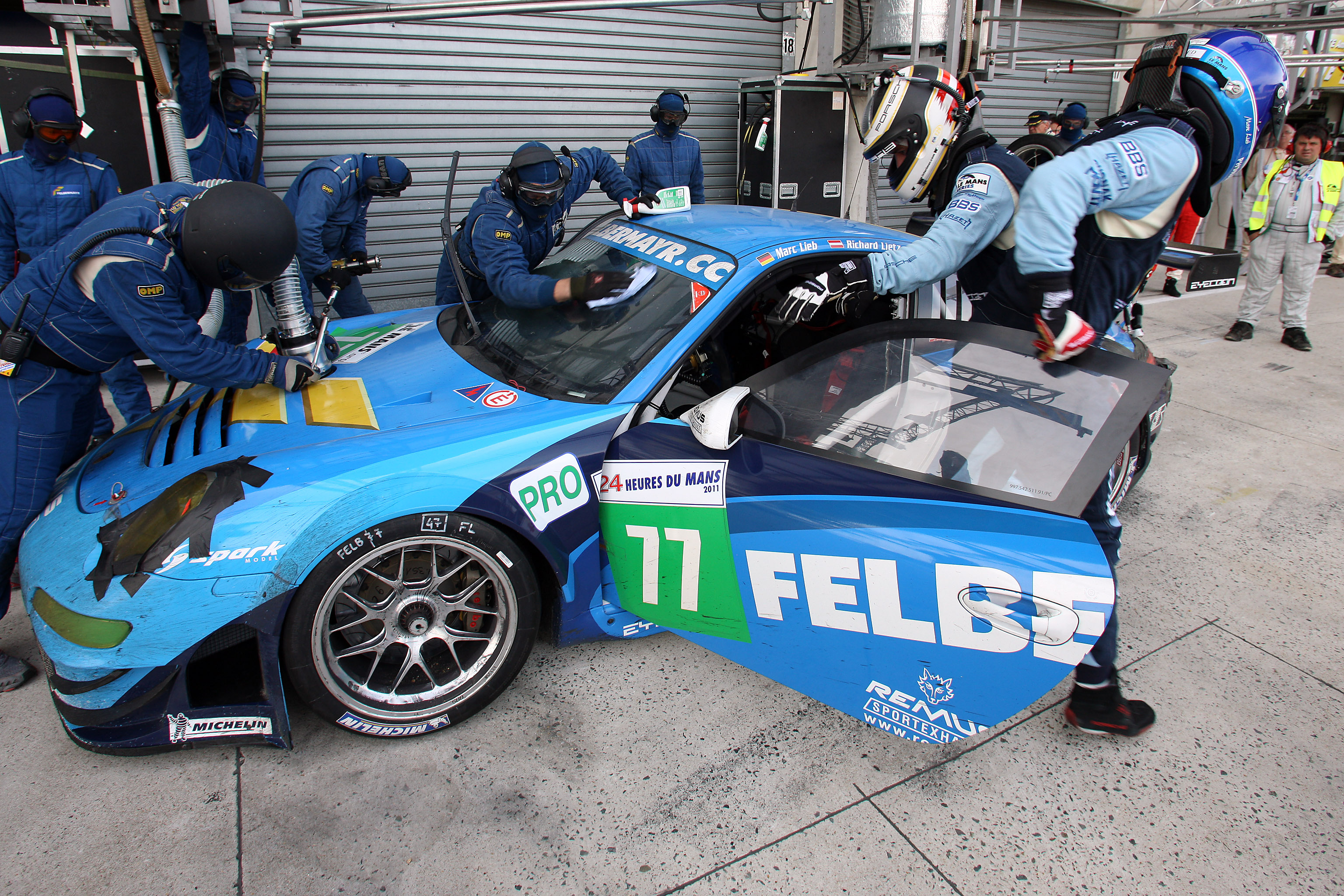 Like in 2010, the best-placed Porsche crew put in a brilliant drive with high reliability in all areas. Drivers Marc Lieb, Richard Lietz and Wolf Henzler drove an immaculate race that was punctuated by many accidents and safety car phases. Only in the early stages of the race, the team lost more than one lap, first at the red light on the exit of the pitlane, then due to tyre damage which also required repairs to the car body.