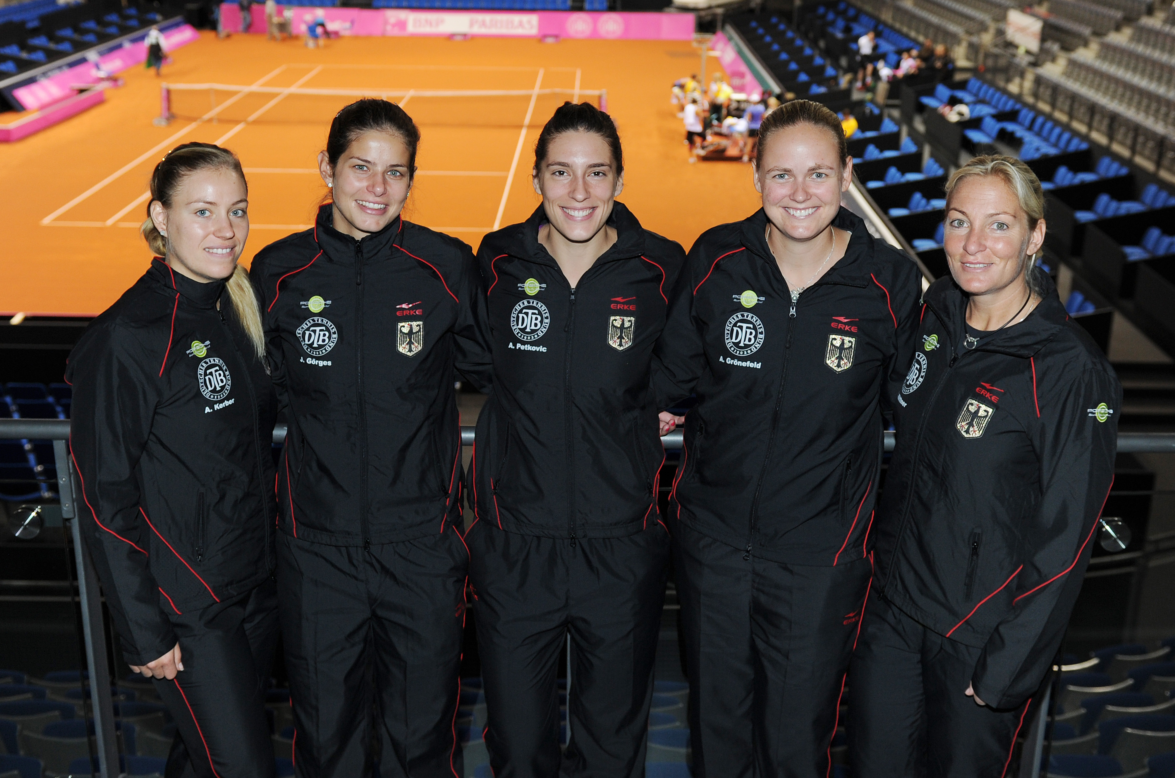 Tennis Fedcup World Group First Round 2012 – Germany Czech Republic in Stuttgart Germany – Porsche Team Deutschland: Anna-Lena Grönefeld, Sabine Lisicki, Barbara Rittner, Julia Görges, Angelique Kerber (v.l.)