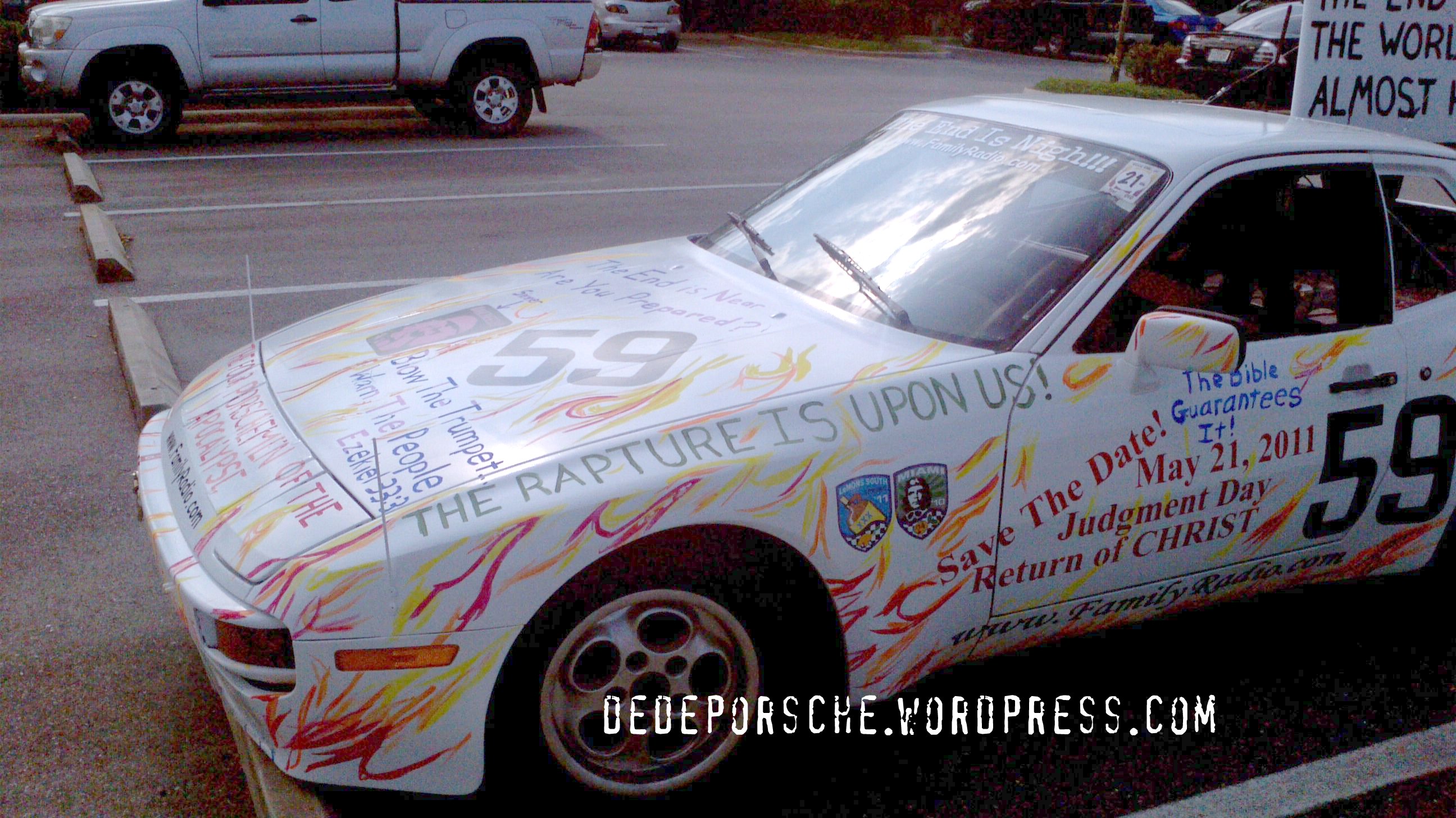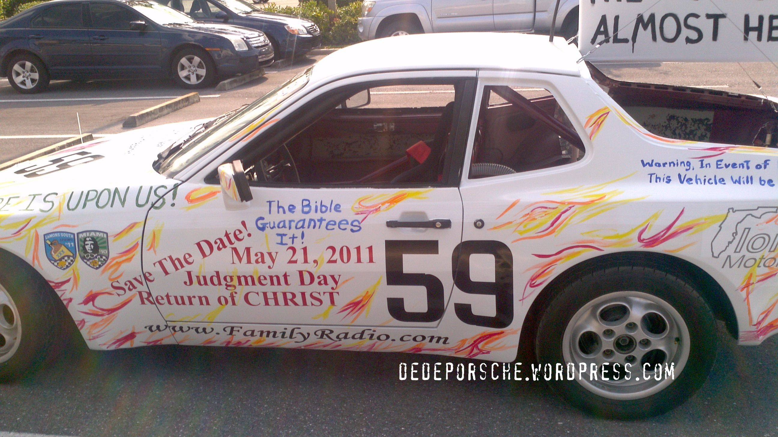 One person, has been warning Christians and heathens alike by driving around in a painted Porsche with Rapture messages.
