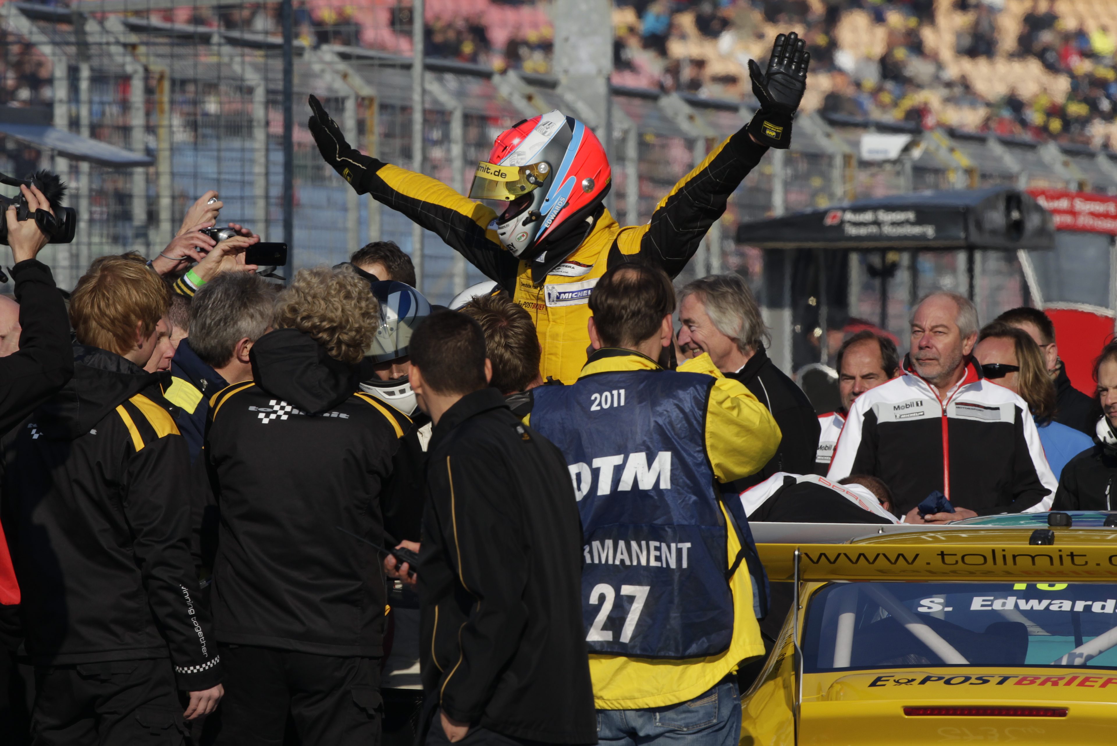 “I’m very pleased with my second Carrera Cup win and the vice-championship. Of course I’m a little disappointed that I didn’t win the title; my bad luck at the Nürburgring was the reason. But this weekend we showed that we have a winning car. I’m very happy with the result, and I’m particularly pleased that my Deutsche Post crew has won the team championship, they are over the moon. And congratulations to Nick – after all a Briton has won the title.”