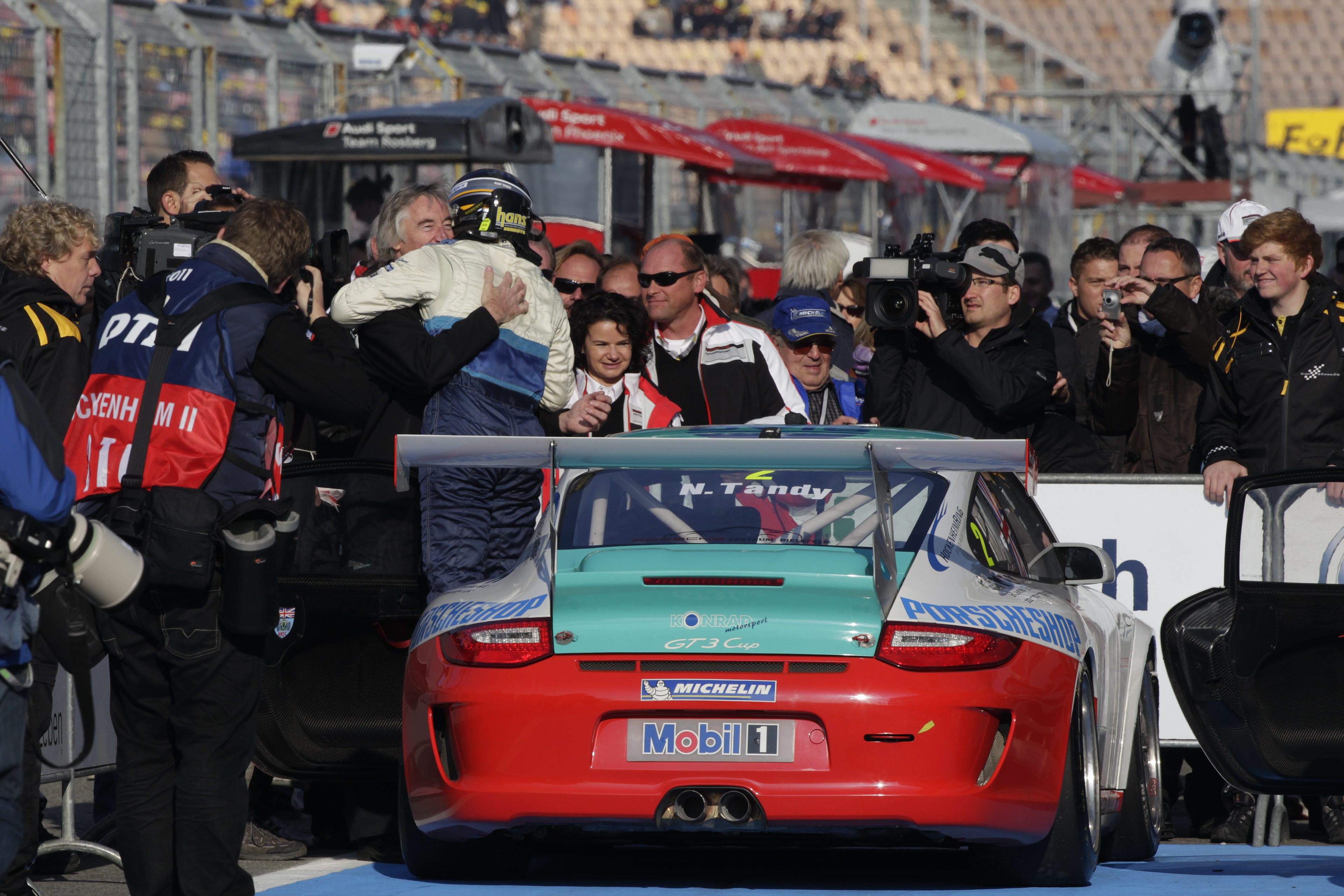 In September 2009, he opens the way for the Briton to contest a Carrera Cup race. Tandy comes to Dijon with experience as a guest starter in the British Cup, qualifies in second in the rain and finishes second behind Jeroen Bleekemolen who was driving for the Konrad team in the Supercup.
