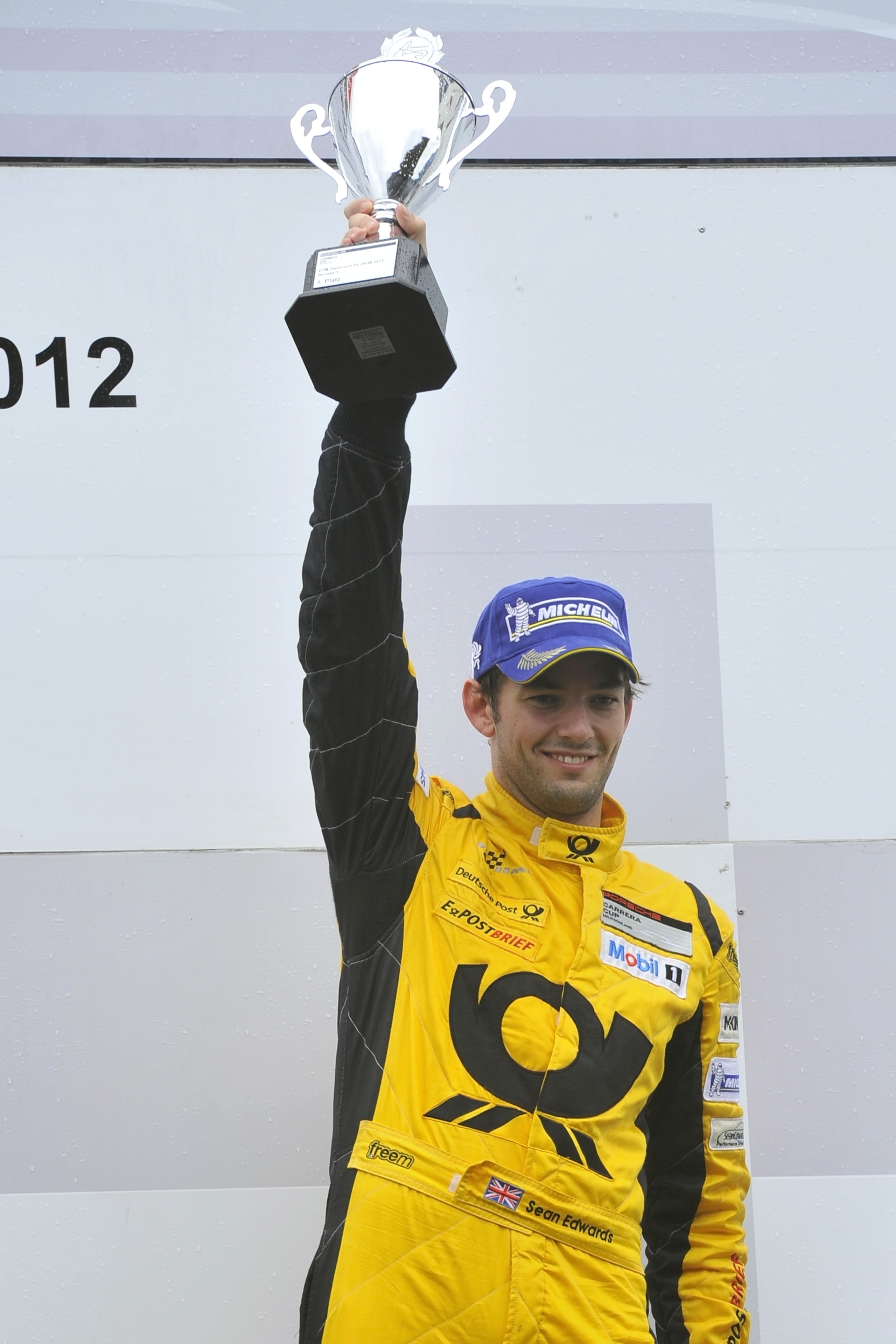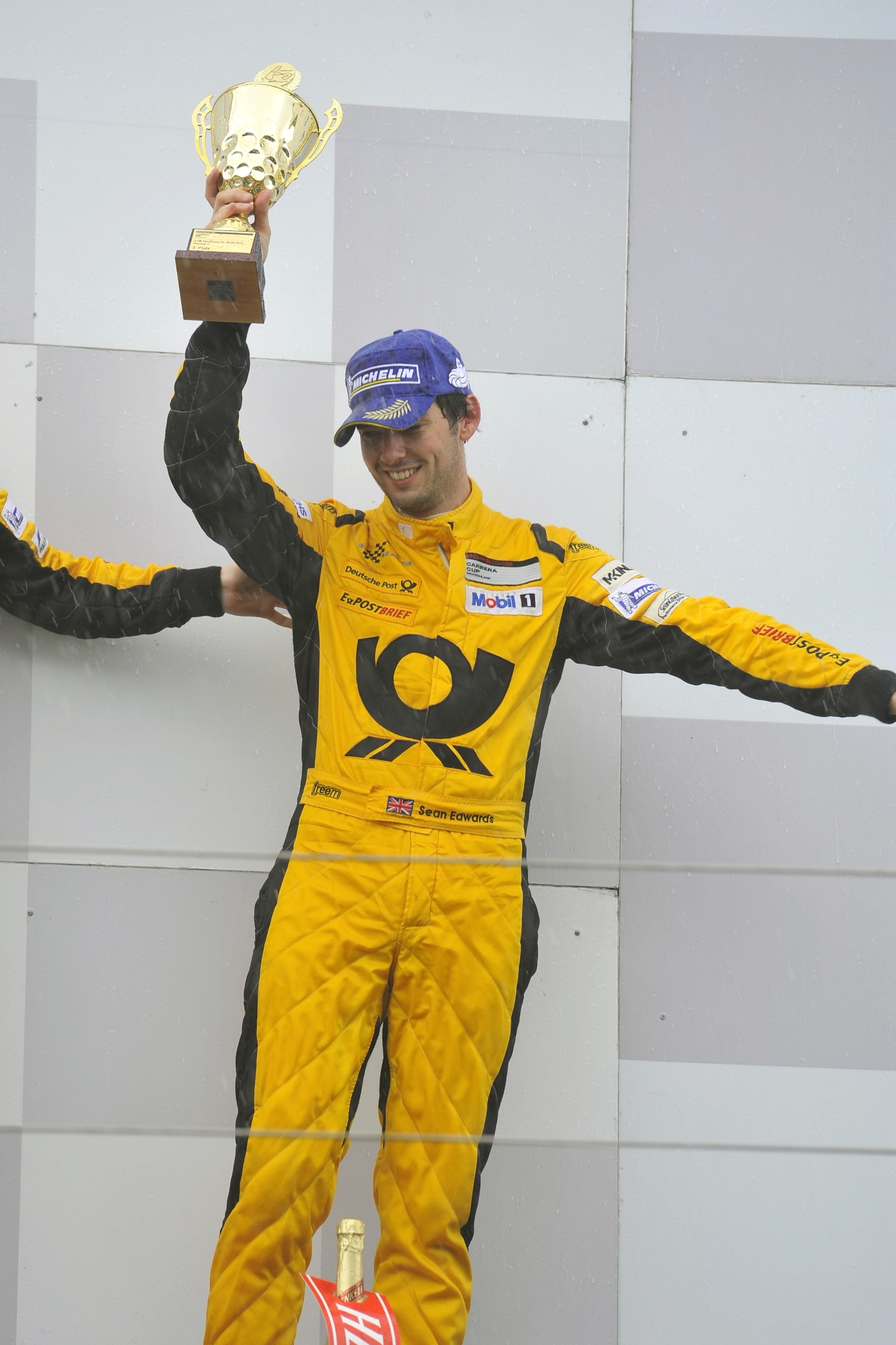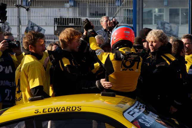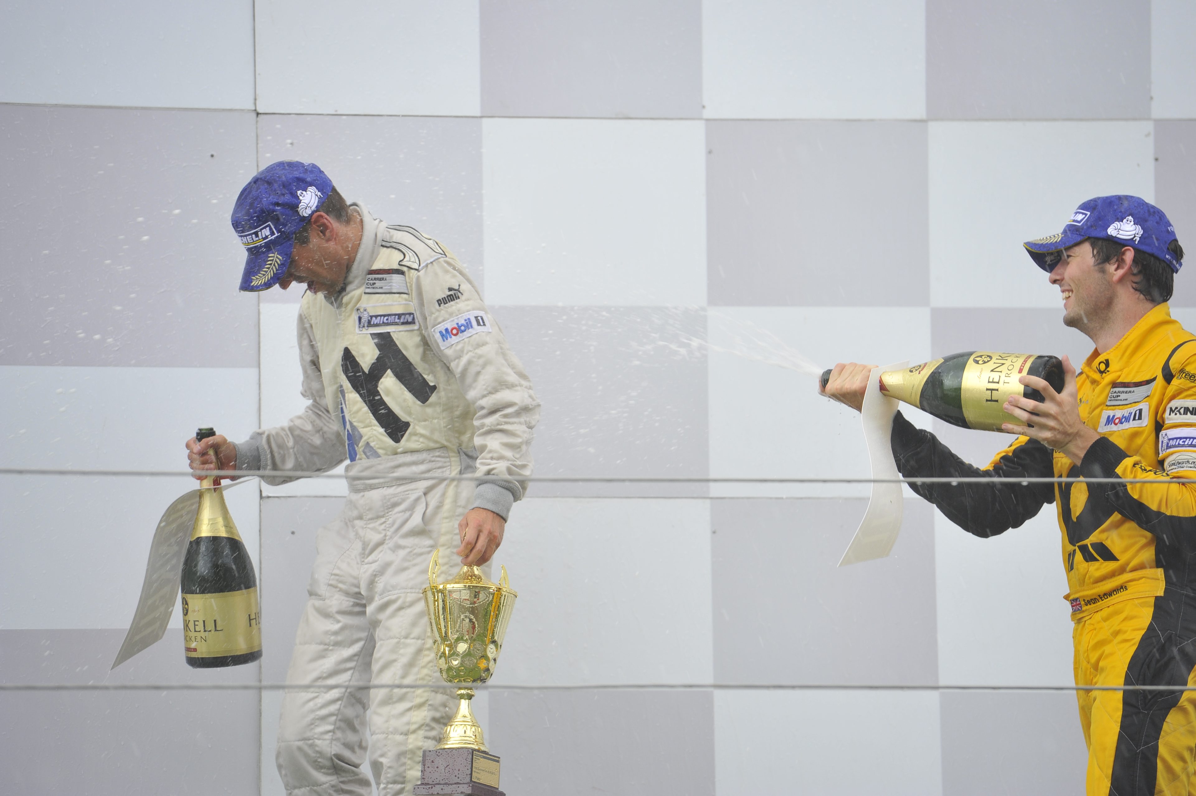 Edwards, in the meantime, celebrates his first Carrera Cup win as the ‘rainman’.
