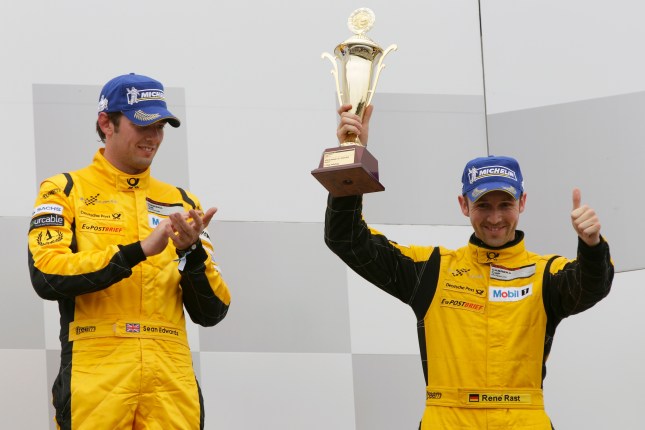 When the race was stopped after eight laps due to torrential rain, Rast’s teammate Sean Edwards was announced as winner.