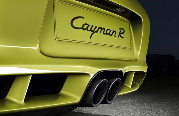 The Porsche Cayman R features a 20 mm lowered ride height, a distinctive fixed rear spoiler, new alloy wheels, black-framed headlights and black exterior mirrors.