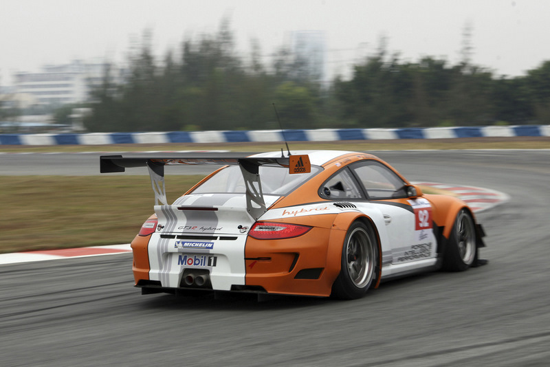 A successful season finale for Porsche: At the 1,000 kilometre race in Zhuhai/China, the Porsche 911 GT3 R Hybrid impressed once again with its performance and efficiency. The innovative sports car from Weissach, piloted by Porsche works drivers Joerg Bergmeister (Germany) and Patrick Long (USA), was by far the fastest GT vehicle in the field at its eagerly awaited premiere in Asia. Porsche factory drivers Marc Lieb (Germany) and Richard Lietz (Austria) claimed second place in the GT2 class with the Porsche 911 GT3 RSR on China’s oldest race track. With this result, they secured the team championship for their Felbermayr-Proton squad at the Intercontinental Le Mans Cup, run for the first time this year. “The first race in China with the 911 GT3 R Hybrid was a complete success,” says Hartmut Kristen, Porsche Head of Motorsport. “The car contested the entire race without the slightest technical problem. The excellent pit stops by our factory squad from Weissach and an absolutely perfect performance from the drivers also contributed to this success. The development work on the hybrid system that we conducted since the last race in Road Atlanta has paid off. Today, we showed impressively just what potential the hybrid technology has. This result is a great motivation for continuing our work on the project. This was definitely not the last race for the 911 GT3 R Hybrid.”