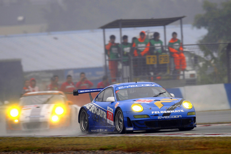 With the second 911 GT3 RSR fielded by the Felbermayr-Proton team, Martin Ragginger (Austria), Christian Ried (Germany) and Gianluca Roda (Italy) occupied fourth place – despite the botched and unnecessary overtaking manoeuvre of a Peugeot prototype that forced Martin Ragginger into the gravel trap in the last hour of the race. The former Porsche-Junior had to pit and lost ten minutes. In the Felbermayr-Proton camp, however, elation prevailed. “That was a fantastic year for our team. Firstly our win in Le Mans, then the Le Mans Series victory and now the best team in the Intercontinental Le Mans Cup – you can’t really do more,” said Christian Ried, team boss and driver at Felbermayr-Proton. “To be so successful, everything has to run smoothly and that was exactly the case in our team. We didn’t retire once. Despite never having started from pole position, we won three races. That can only work with a good car, strong drivers and a super team.” One of the first to congratulate the crew was Hartmut Kristen: “I’m particularly thrilled that Felbermayr-Proton won the team classification.” Despite his strong drive, Richard Westbrook (Great Britain) didn’t manage to see the flag with the Prospeed Competition 911 GT3 RSR. The double Supercup winner and former FIA GT champion was on course for a podium result with his teammate Darryl O’Young (Hong Kong) when a clutch problem in the 119th lap signalled the end. “What a shame. We were looking very good in third place,” he commented. “Our mechanics tried their very best to repair the car but time ran out for us.” Local hero Darryl O’Young said: “It was a fabulous experience to drive on this track with the 911 GT3 RSR and to be cheered by so many fans. I became more and more familiar with the car. Under normal circumstances we would have finished on the podium. That would have been a highlight in my career. What a shame it didn’t work out.”