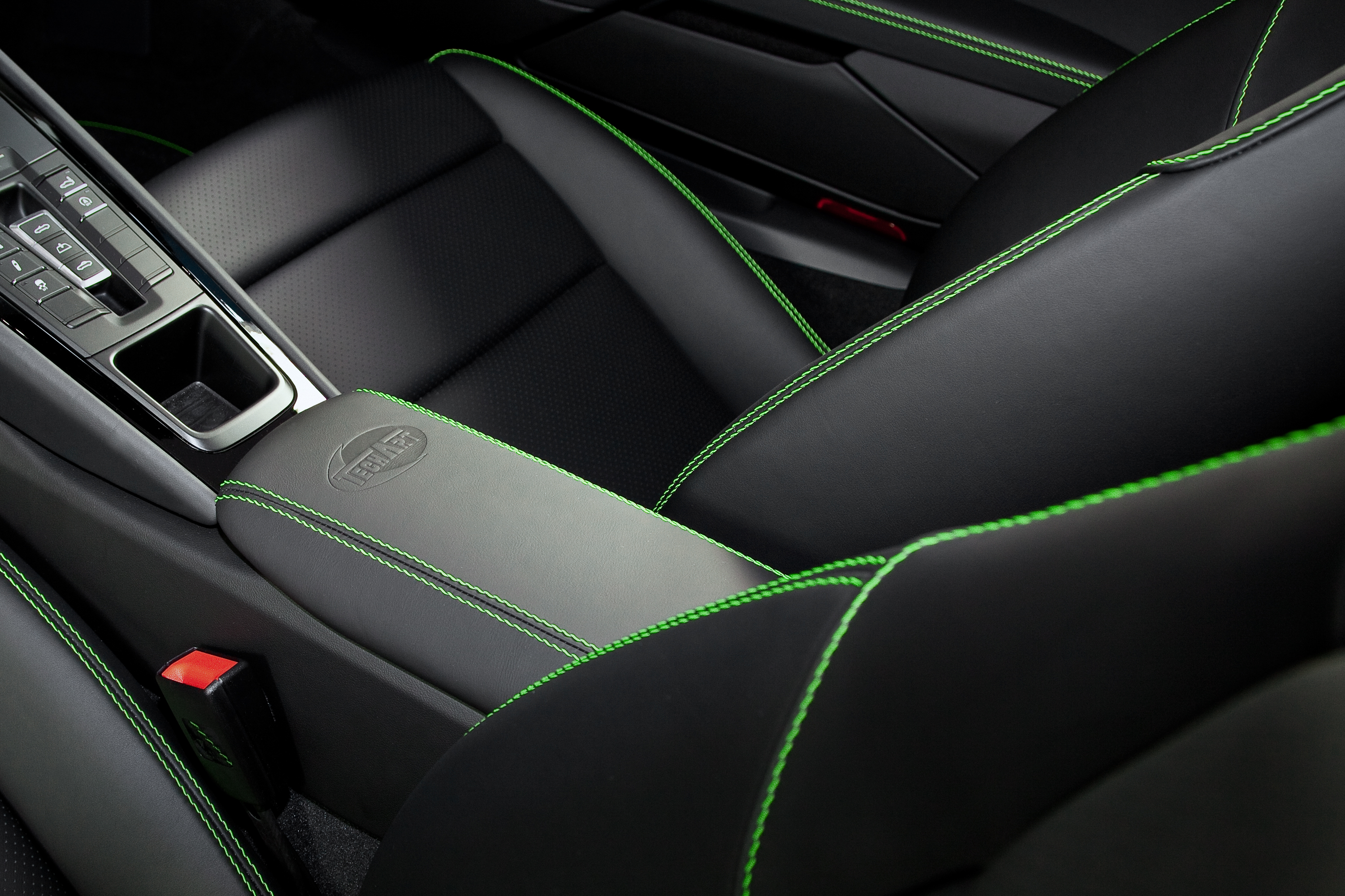 Typical of the GTS, the emphatically sporty black Alcantara covering on centre panels, steering wheel rim, gearshift and handbrake lever, door handles and door storage box lid and extension are offered as standard in addition to a range of leather upholstery options.