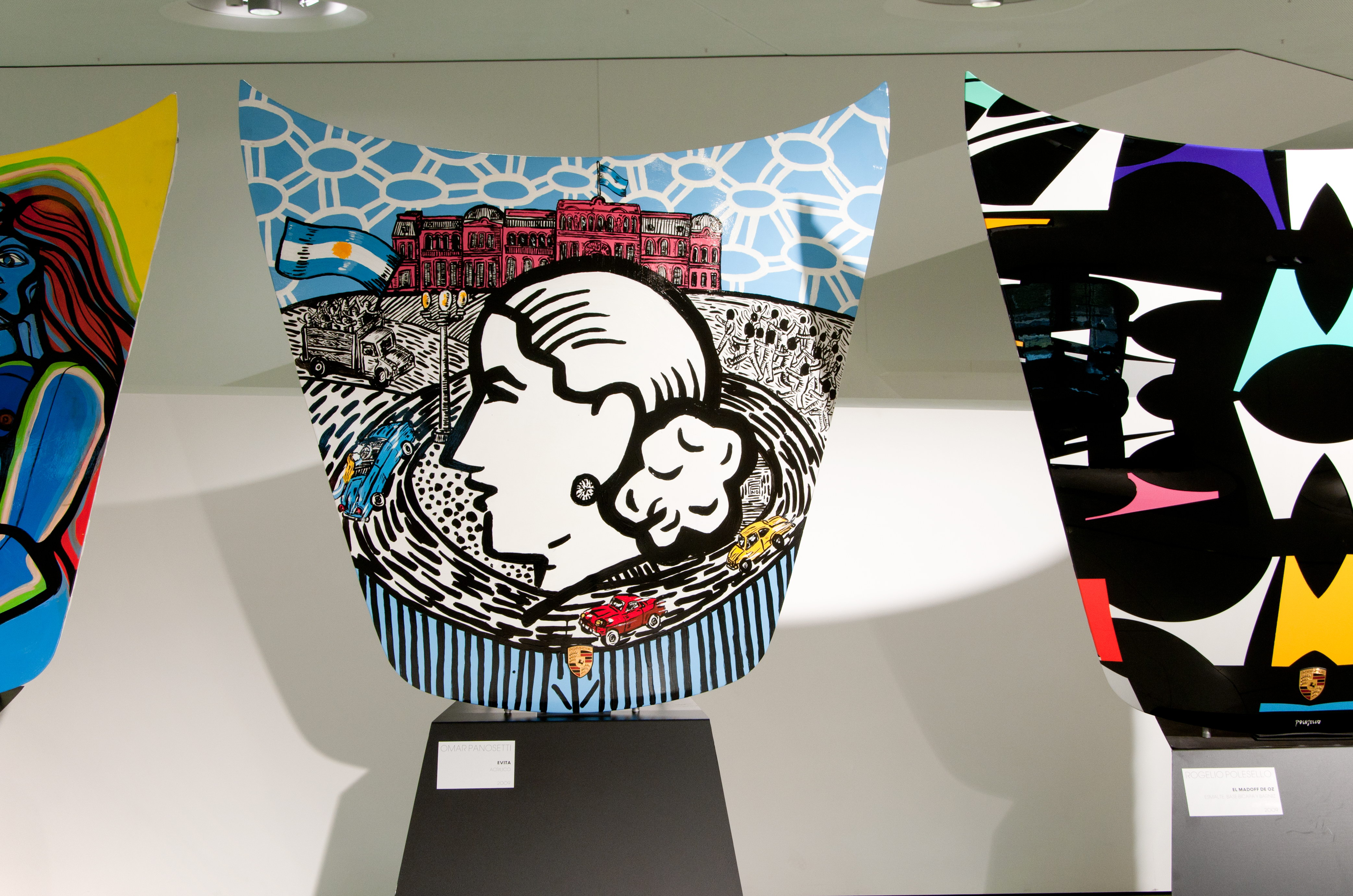 The work on the skin of a racing car inspired the artists to very different works, e.g. Omar Panosetti “Evita”.