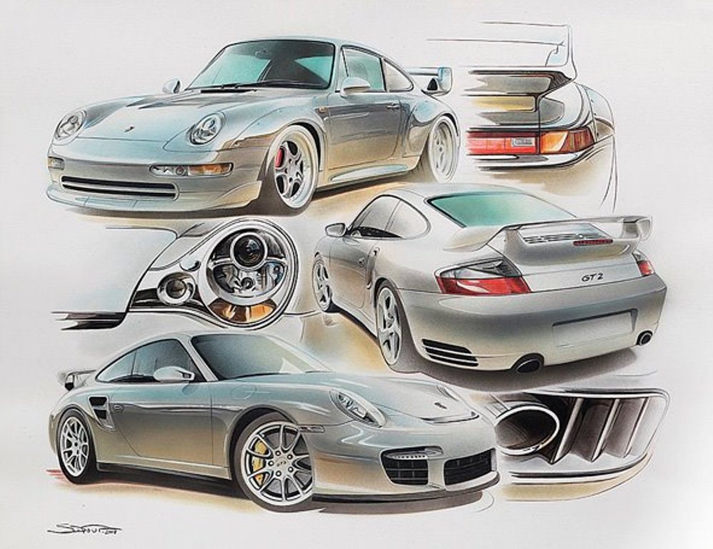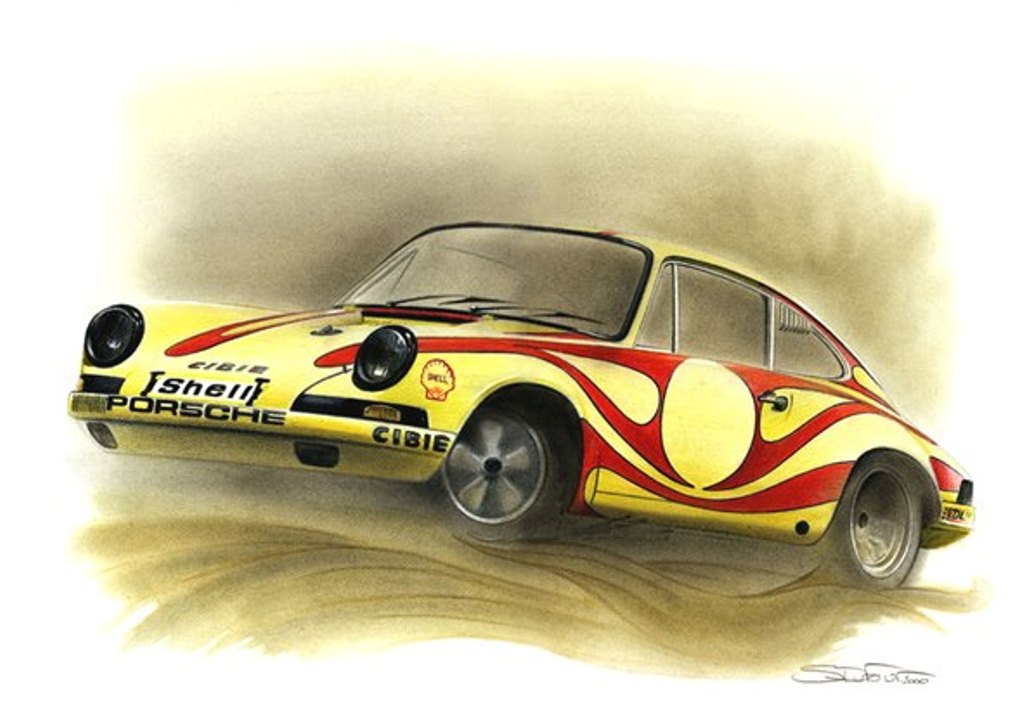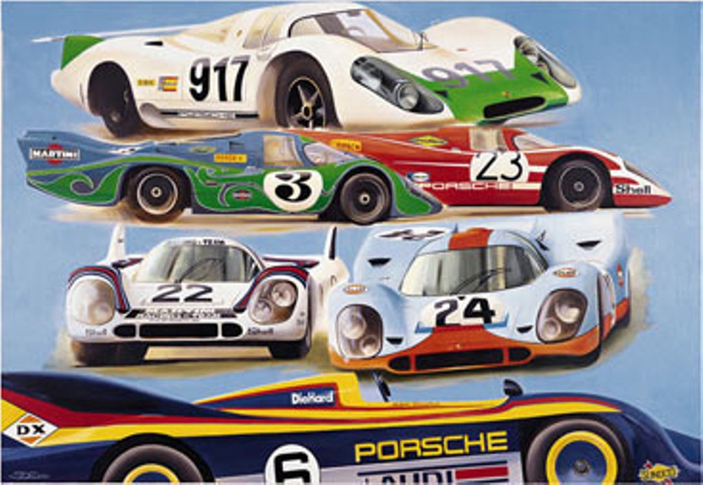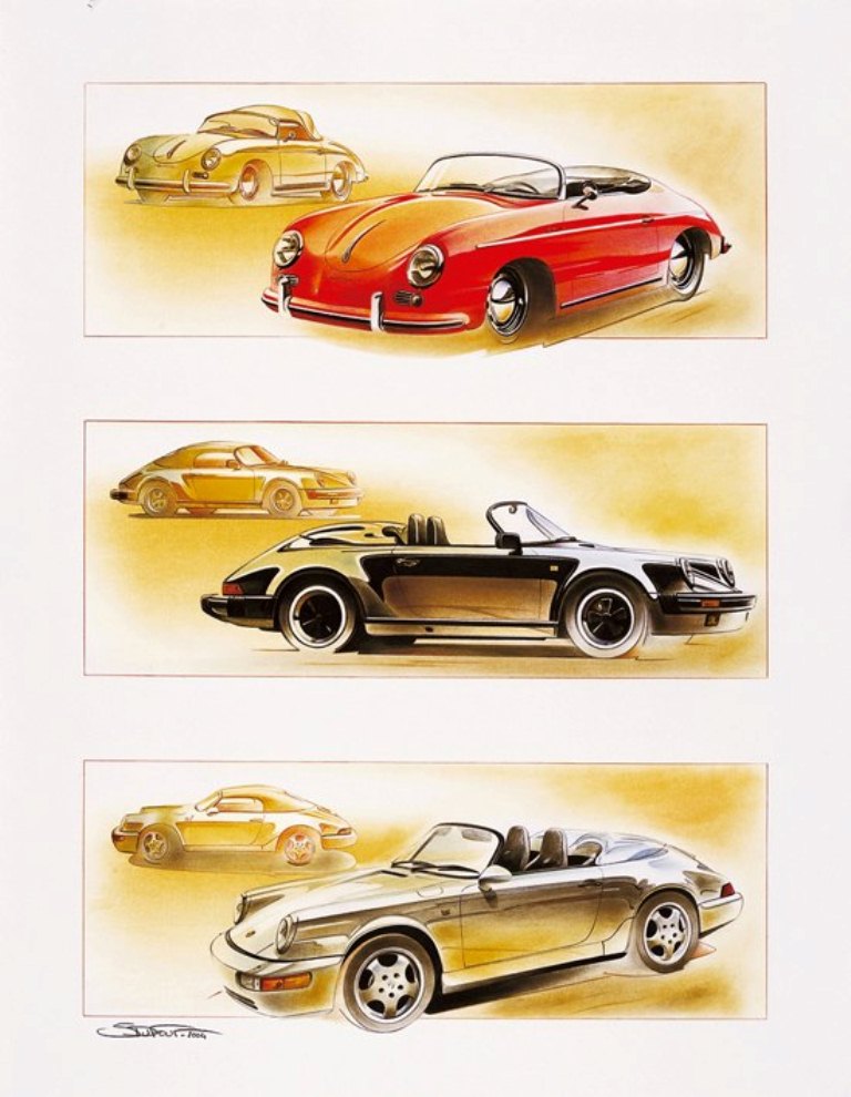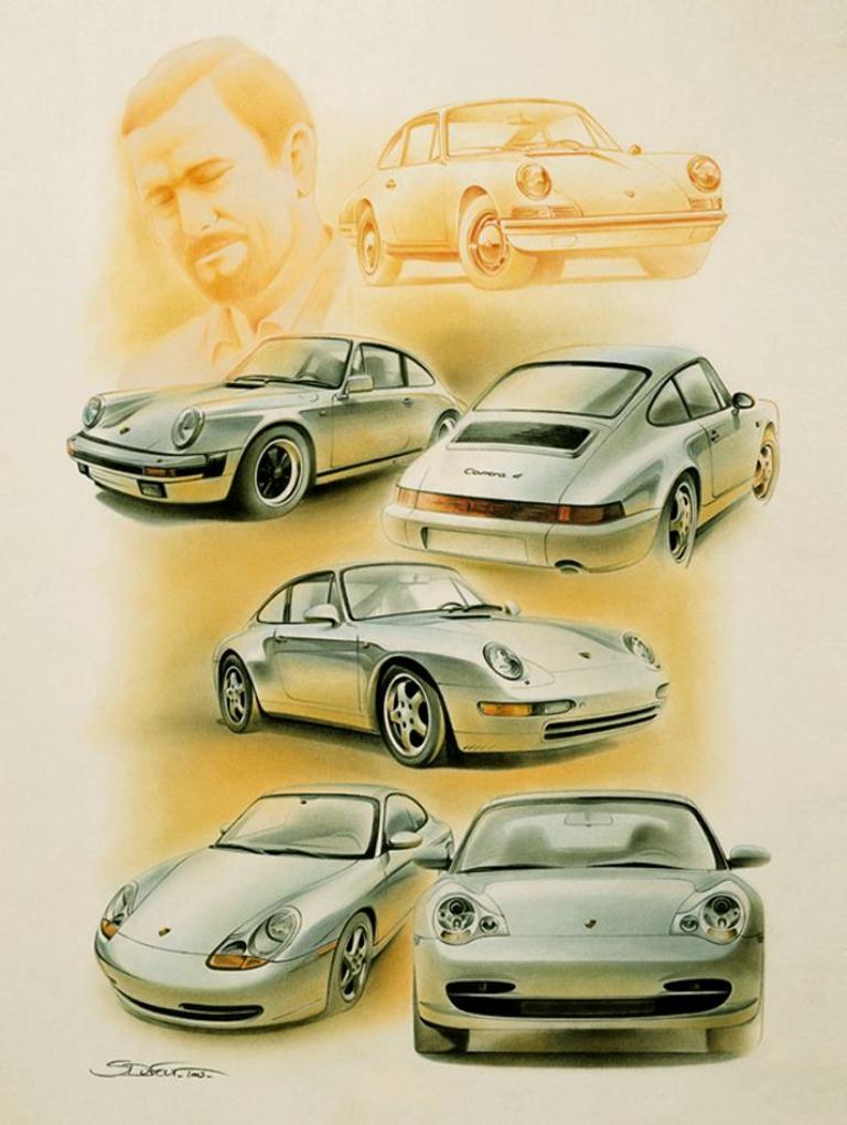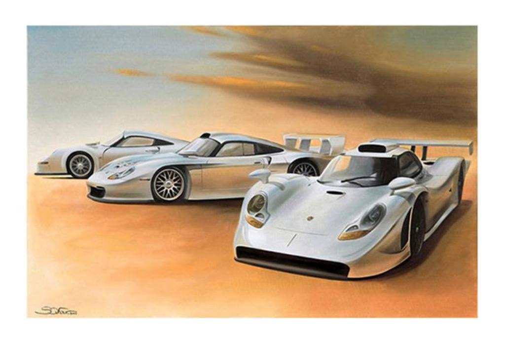 However his unassailable passion for Porsche shines through with numerous and honorable art works of unique German supercars.